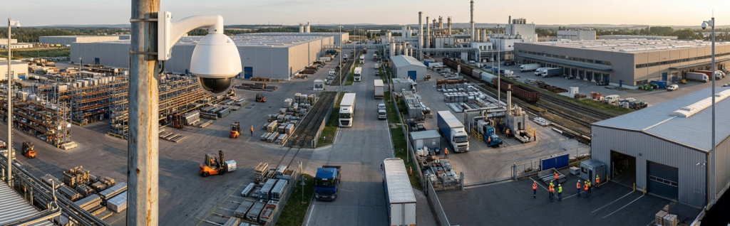 Perfect for surveying large outdoor places, and factory operations, Bosch PTZ (Pan-Tilt-Zoom) cameras offer a 360-degree view from a single spot. Operators are able to pan the camera across a broad area, tilt up and down as well as zoom in for detailed monitoring.